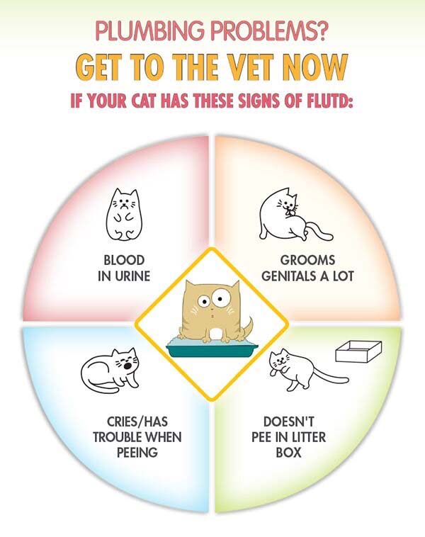 Infection of your cat’s urinary tract with bacteria can cause signs of FLUTD. Infections can be higher when the acid content (pH) and concentration of urine incorrect. Diet and water intake play a huge role in this as well as frequency of urination.